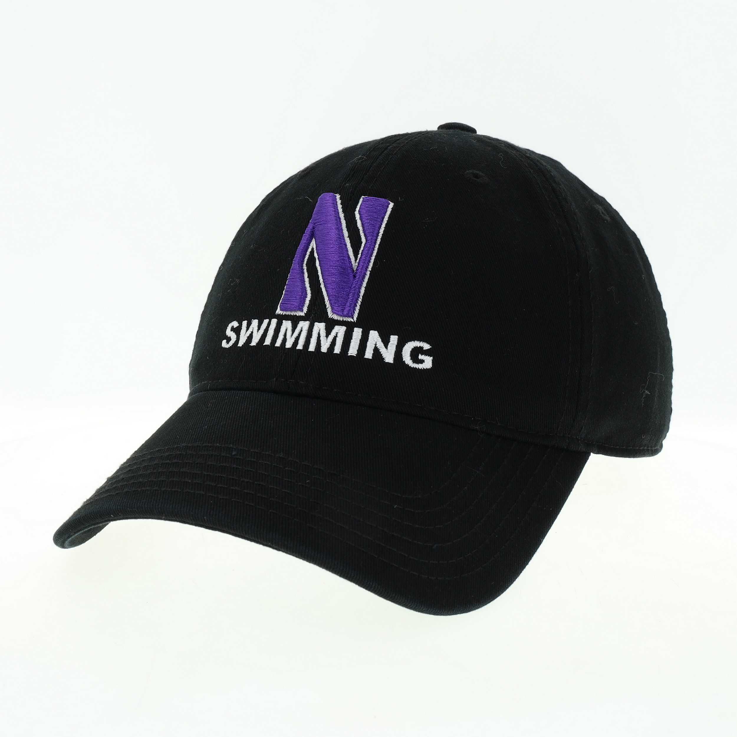 Northwestern University Wildcats Unconstructed Black Cotton Twill Hat with N & Swimming Design