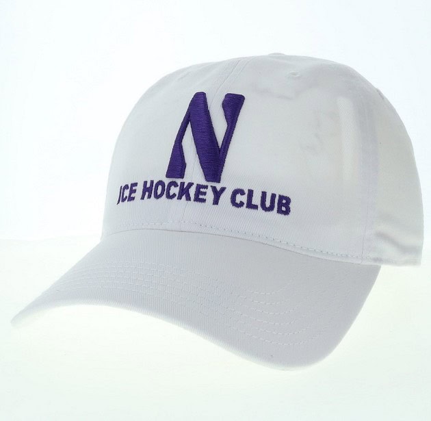 Northwestern University Wildcats Unconstructed White Cotton Twill Hat with N & Ice Hockey Club Design