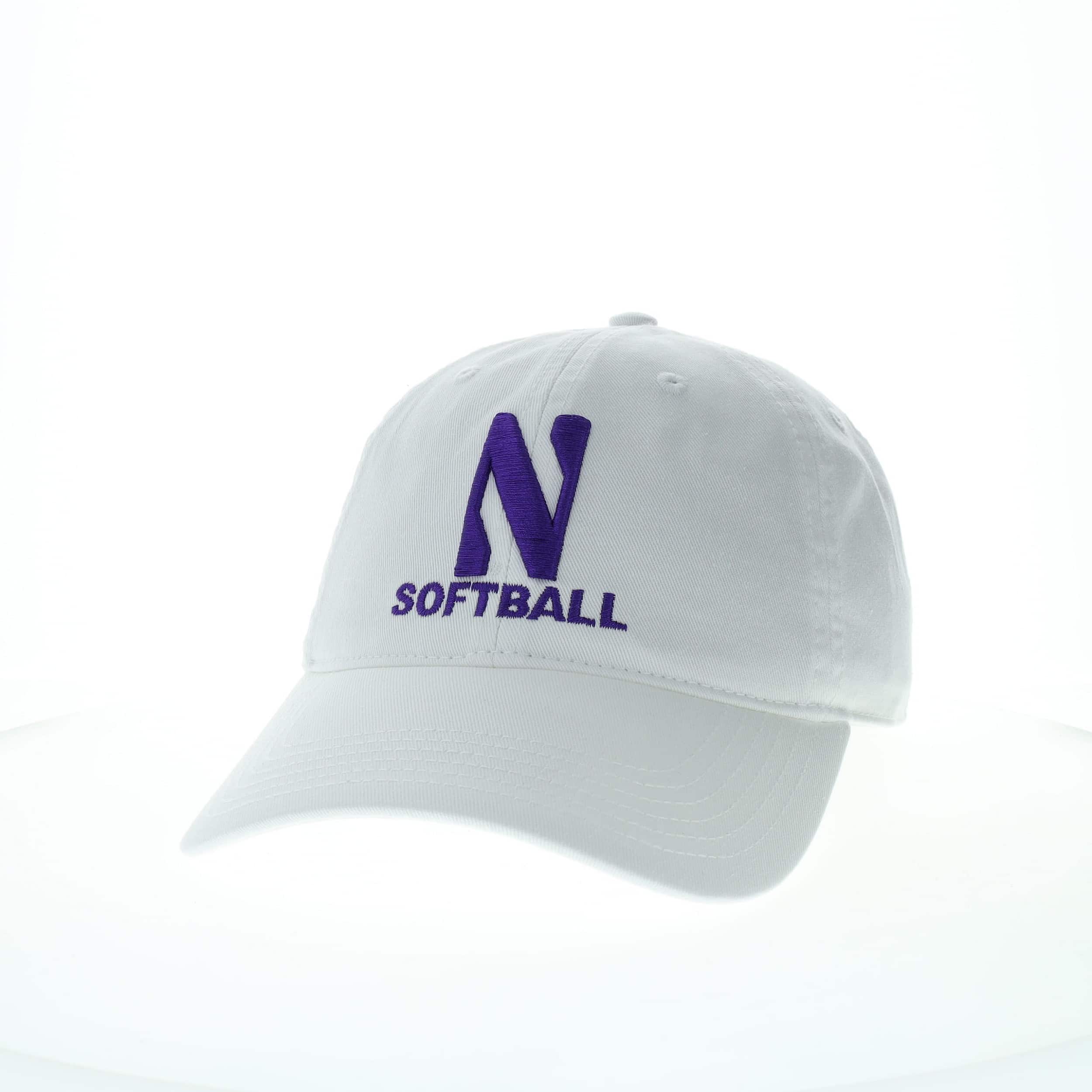 Northwestern University Wildcats Unconstructed White Cotton Twill Hat with N & Softball Design