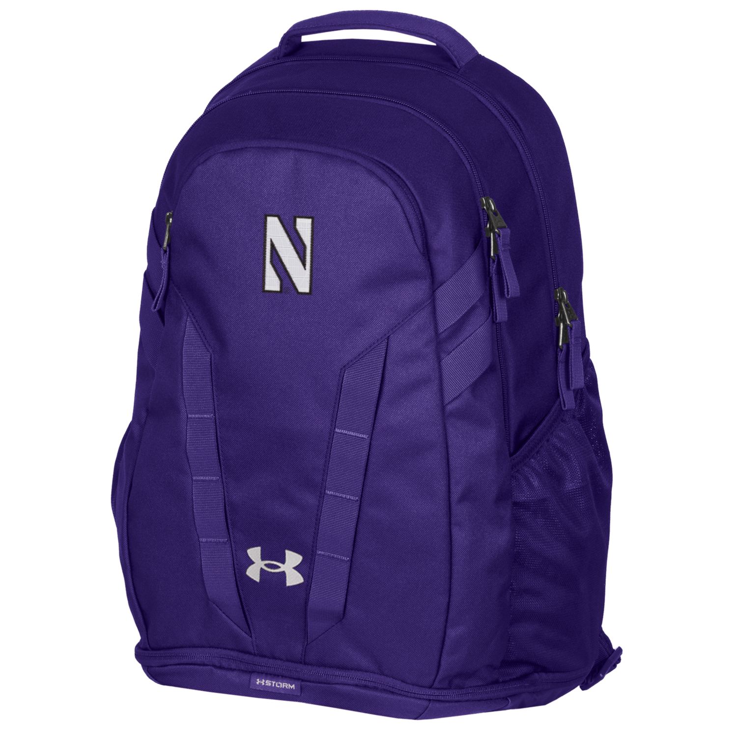 Northwestern University Wildcats Under Armour Purple Hustle 5.0 Backpack with Stylized N in White with Black Outline