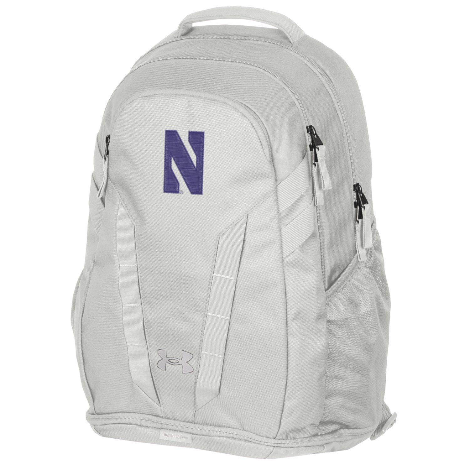 Northwestern University Wildcats Under Armour White Hustle 5.0 Backpack with Stylized N in Solid Purple