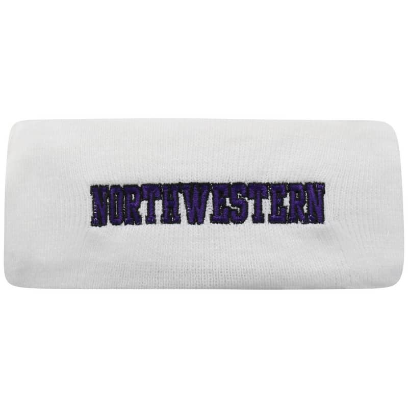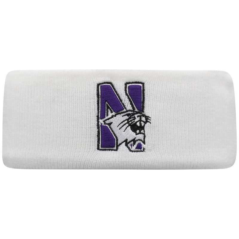 Northwestern University Wildcats White Knit Headband with Northwestern Design On The Front & N-Cat Design On The Back