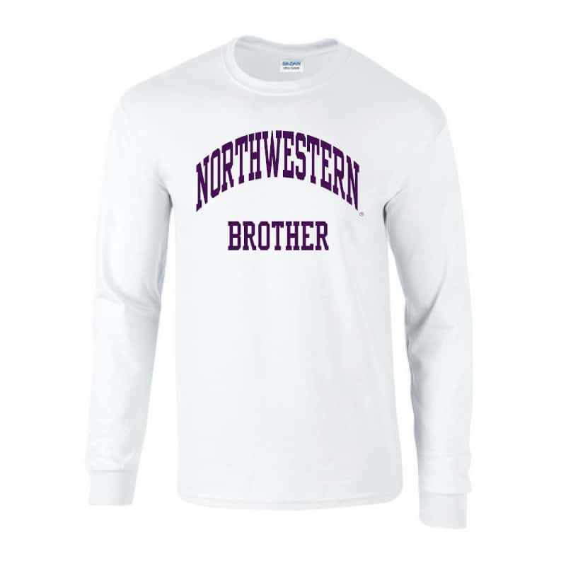 Northwestern University Wildcats White Long Sleeve Tee Shirt with Brother Design