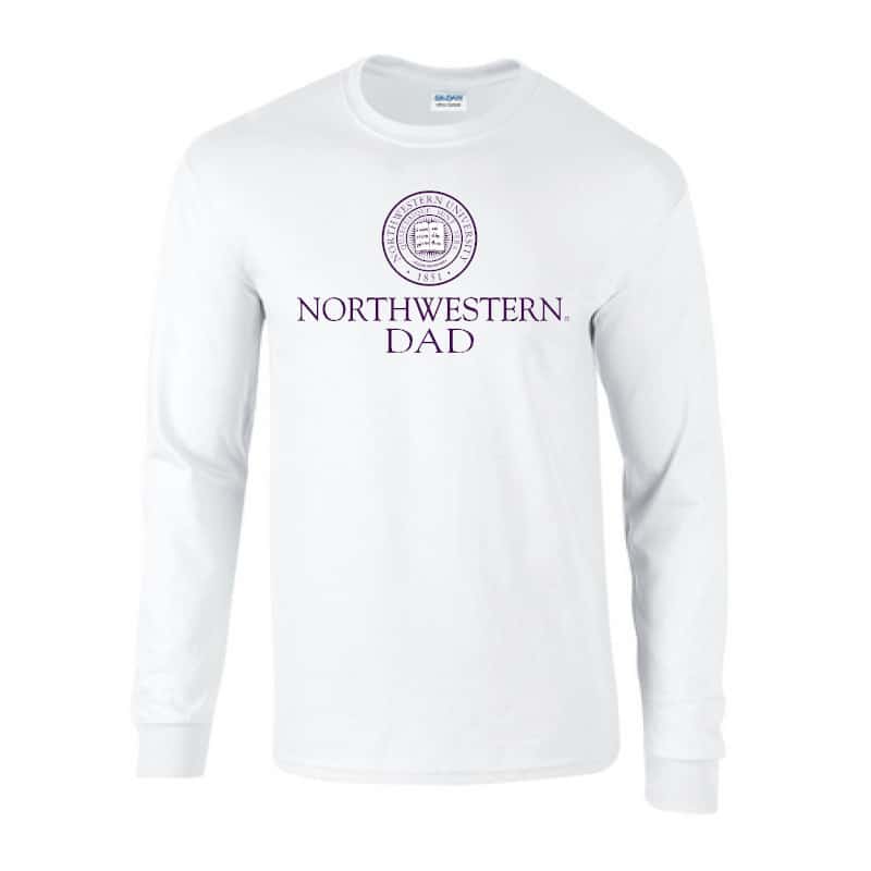 Northwestern University Wildcats White Long Sleeve Tee Shirt with Dad Design
