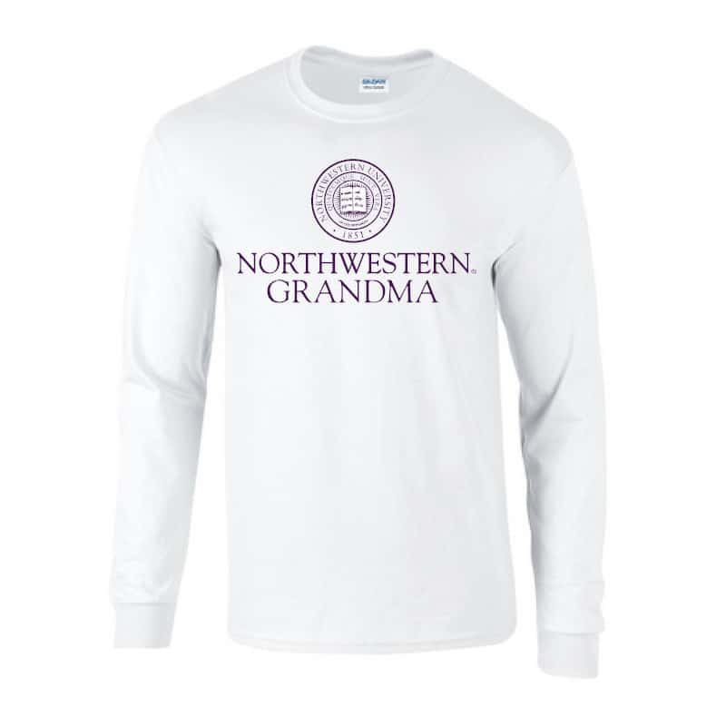 Northwestern University Wildcats White Long Sleeve Tee Shirt with Grandma Design