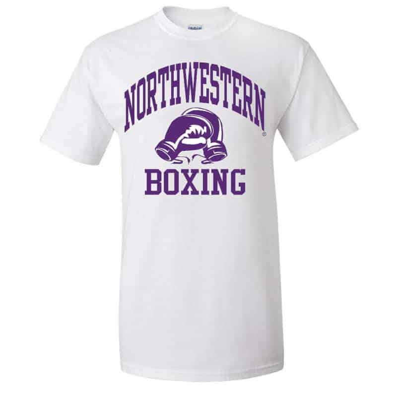 Northwestern University Wildcats White Short Sleeve Tee Shirt with Boxing Design