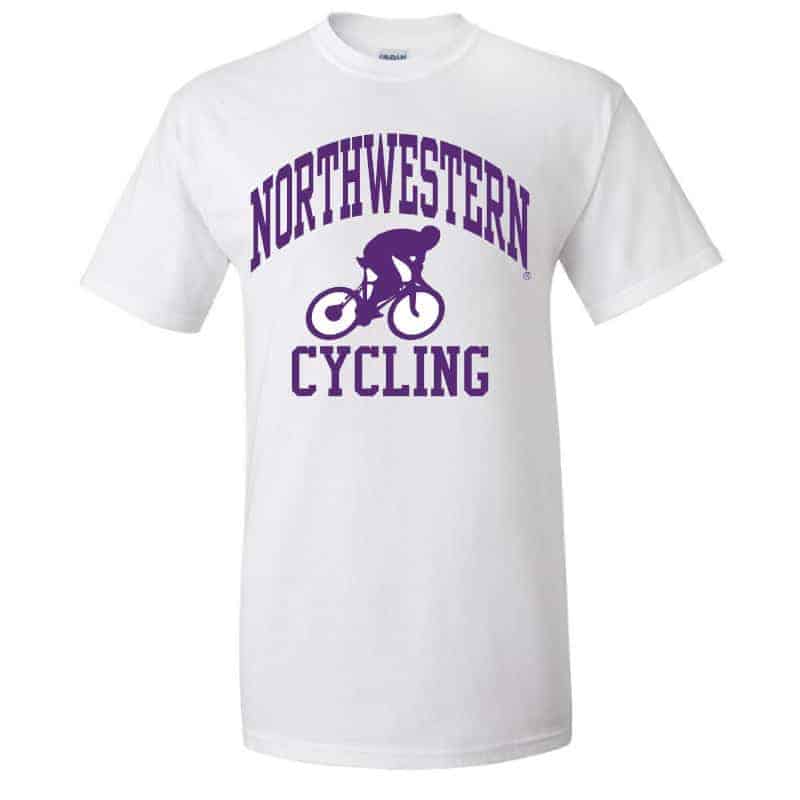 Northwestern University Wildcats White Short Sleeve Tee Shirt with Cycling Design
