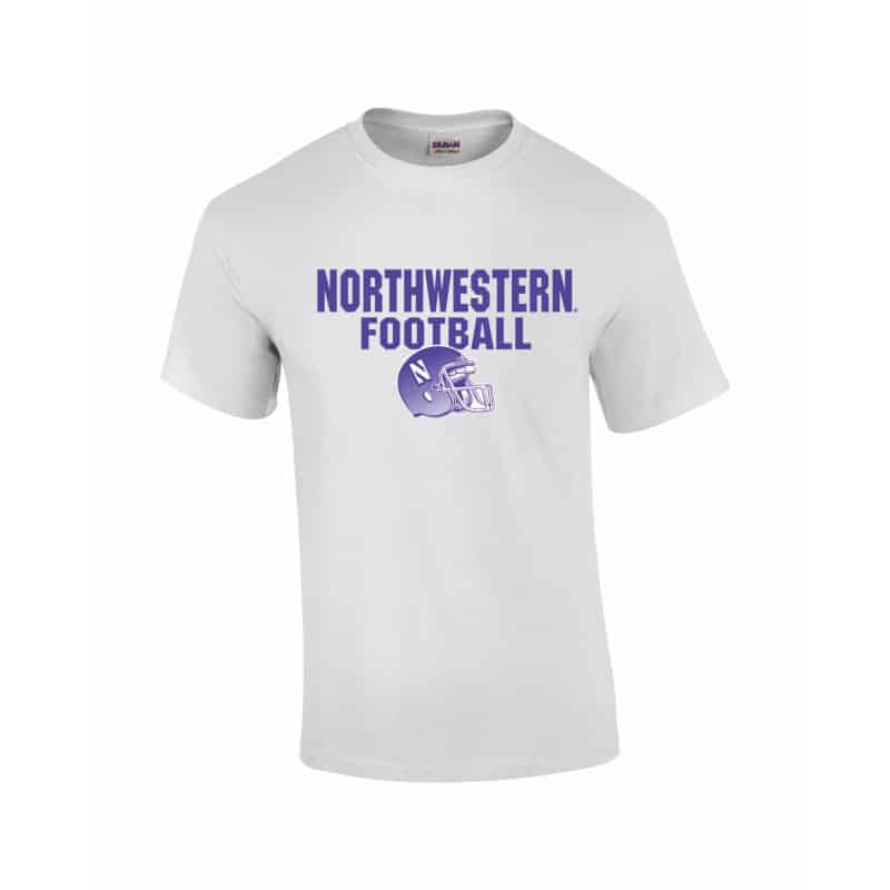 Northwestern University Wildcats White Short Sleeve Tee Shirt with Football Helmet Design