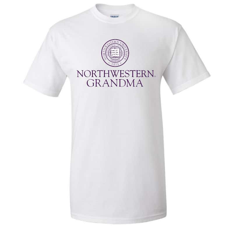 Northwestern University Wildcats White Short Sleeve Tee Shirt with Grandma Design