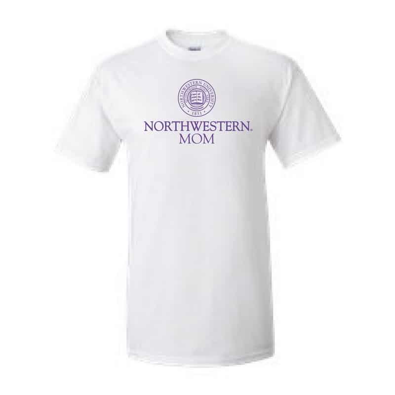 Northwestern University Wildcats White Short Sleeve Tee Shirt with Mom Design