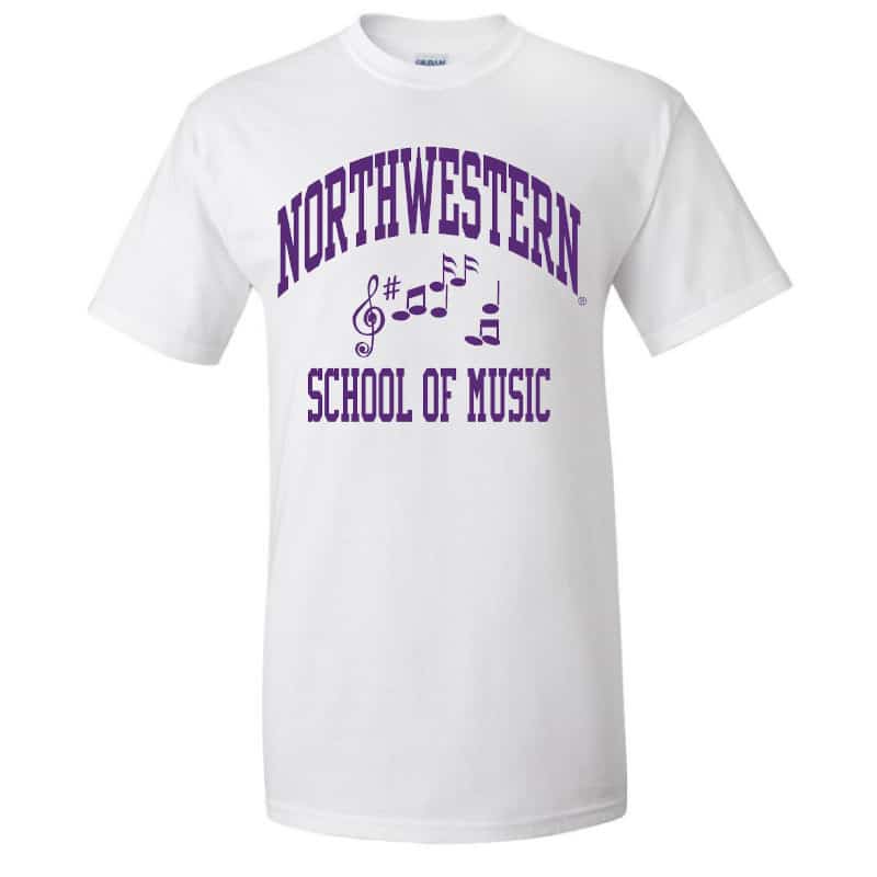 Northwestern University Wildcats White Short Sleeve Tee Shirt with Music Design