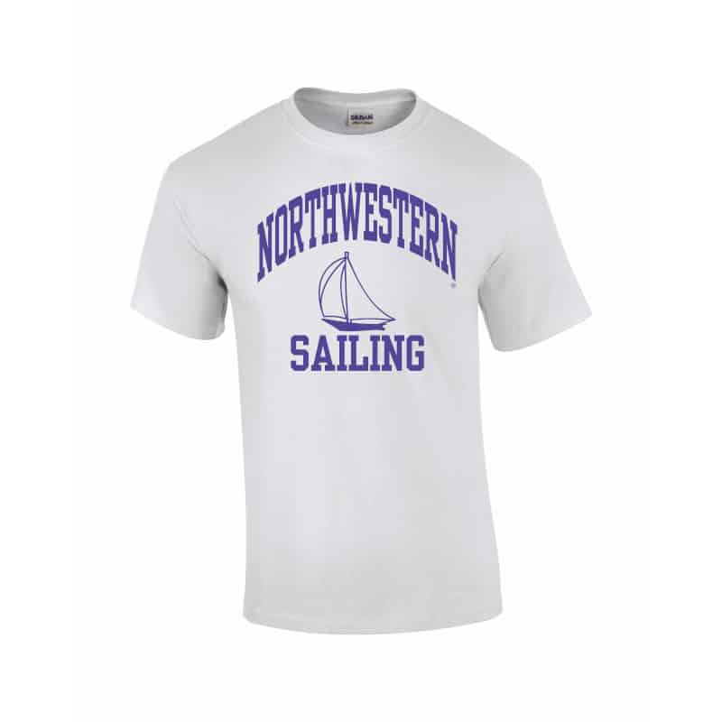 Northwestern University Wildcats White Short Sleeve Tee Shirt with Sailing Design
