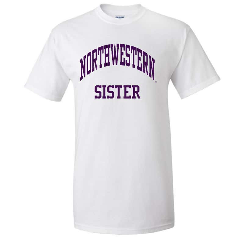 Northwestern University Wildcats White Short Sleeve Tee Shirt with Sister Design