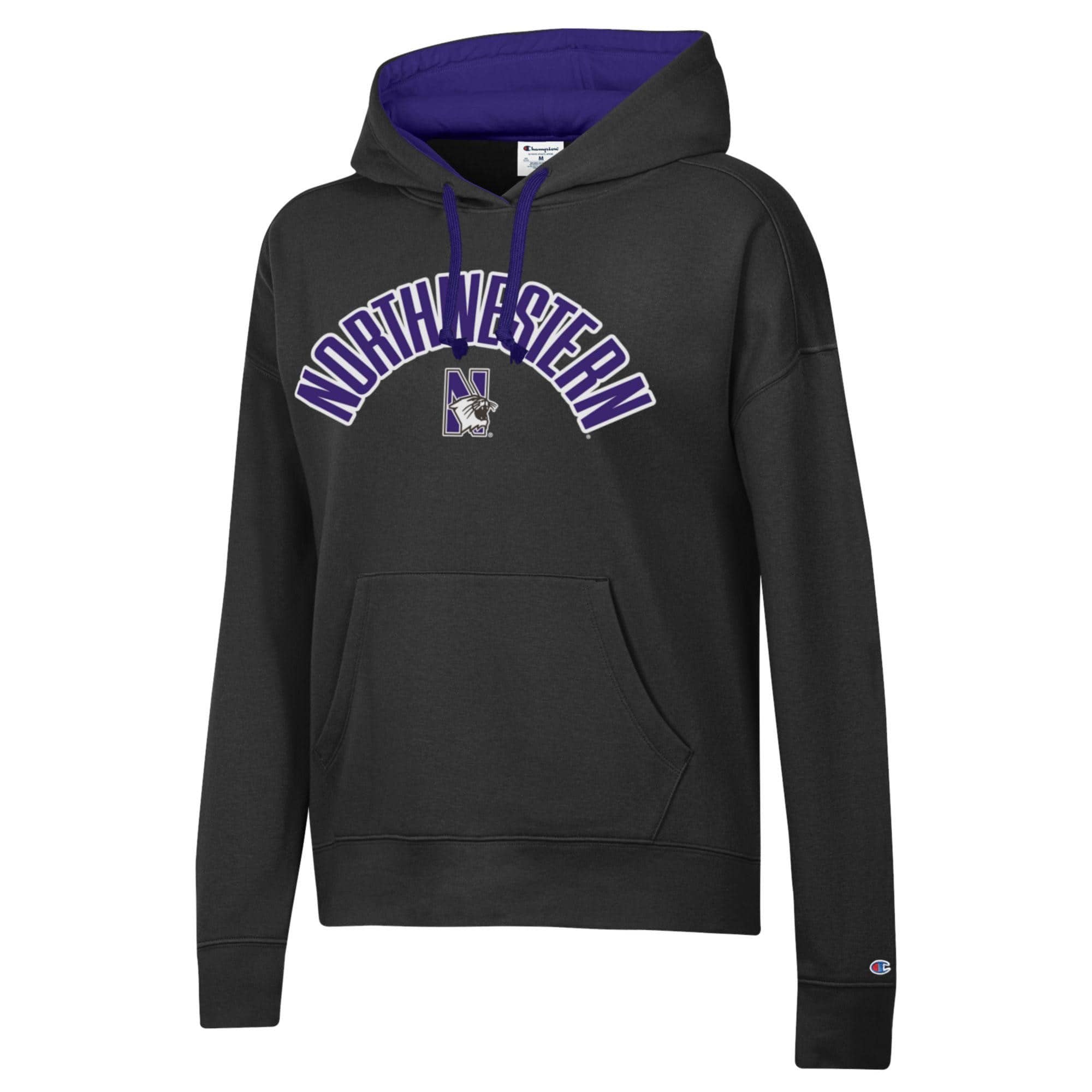 Northwestern University Wildcats Women’s Champion Black Stadium Hoodie with Sewn Appliqué Design