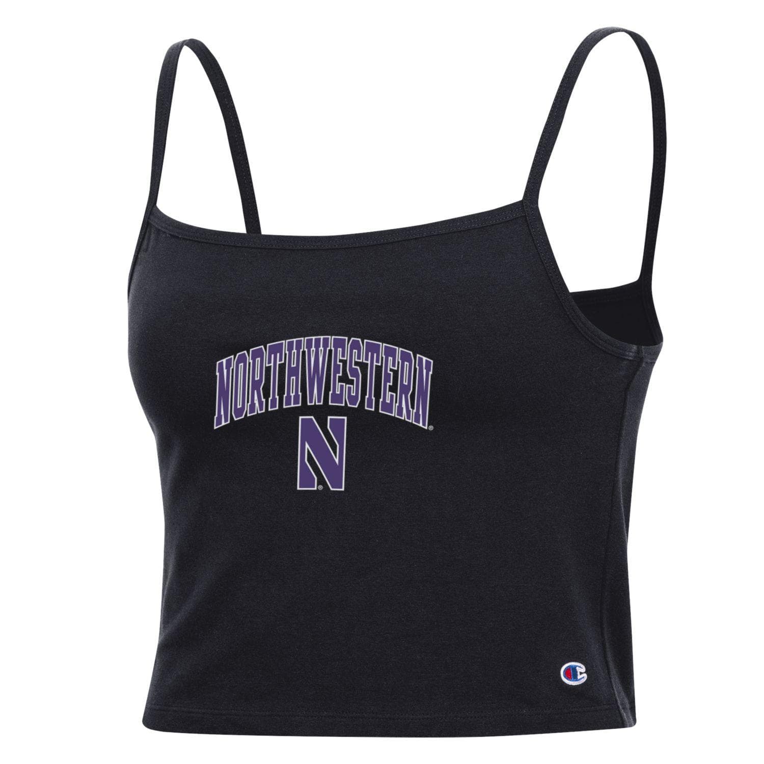 Northwestern University Wildcats Women’s Champion Football Fan Black Cropped Cami with Arch Over N Design