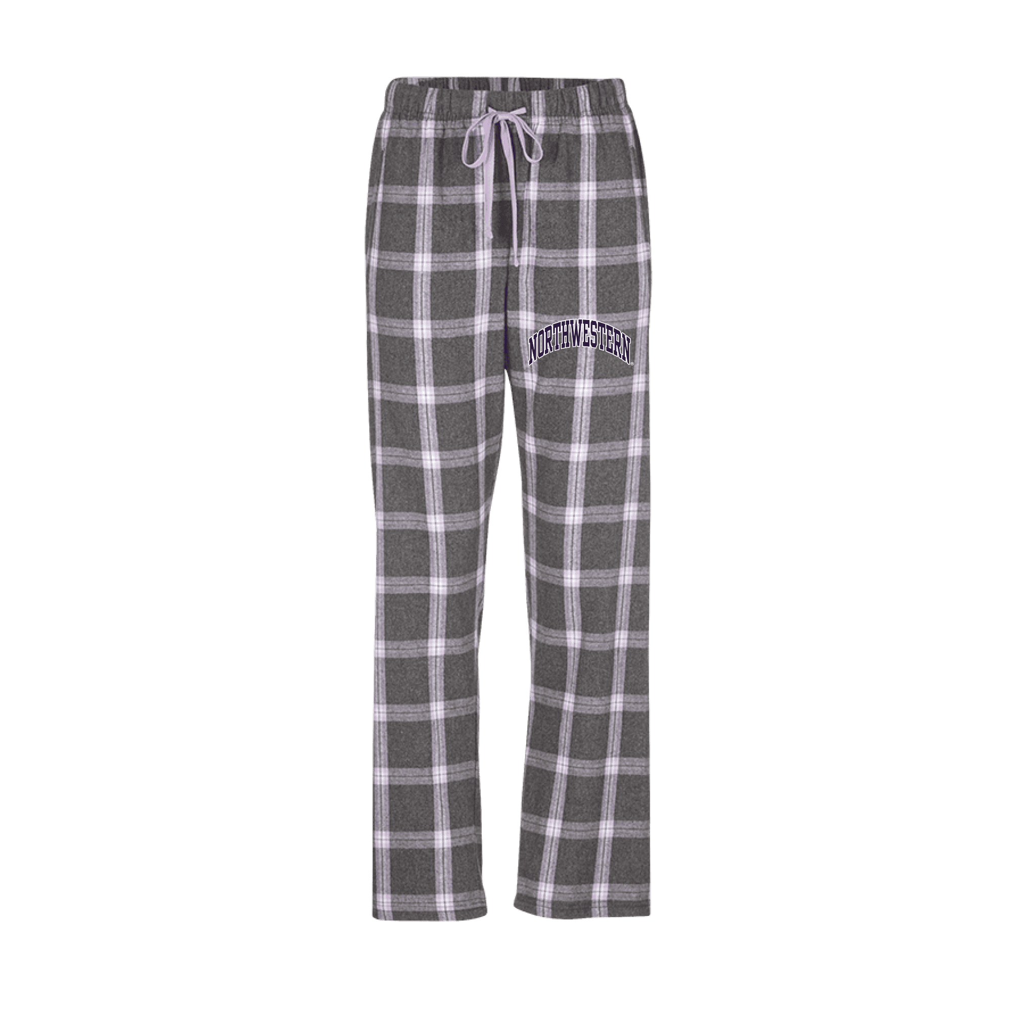 Northwestern University Wildcats Women’s Charcoal Lavender Tomb Plaid Harley Flannel Pants with Small Arched Northwestern Design
