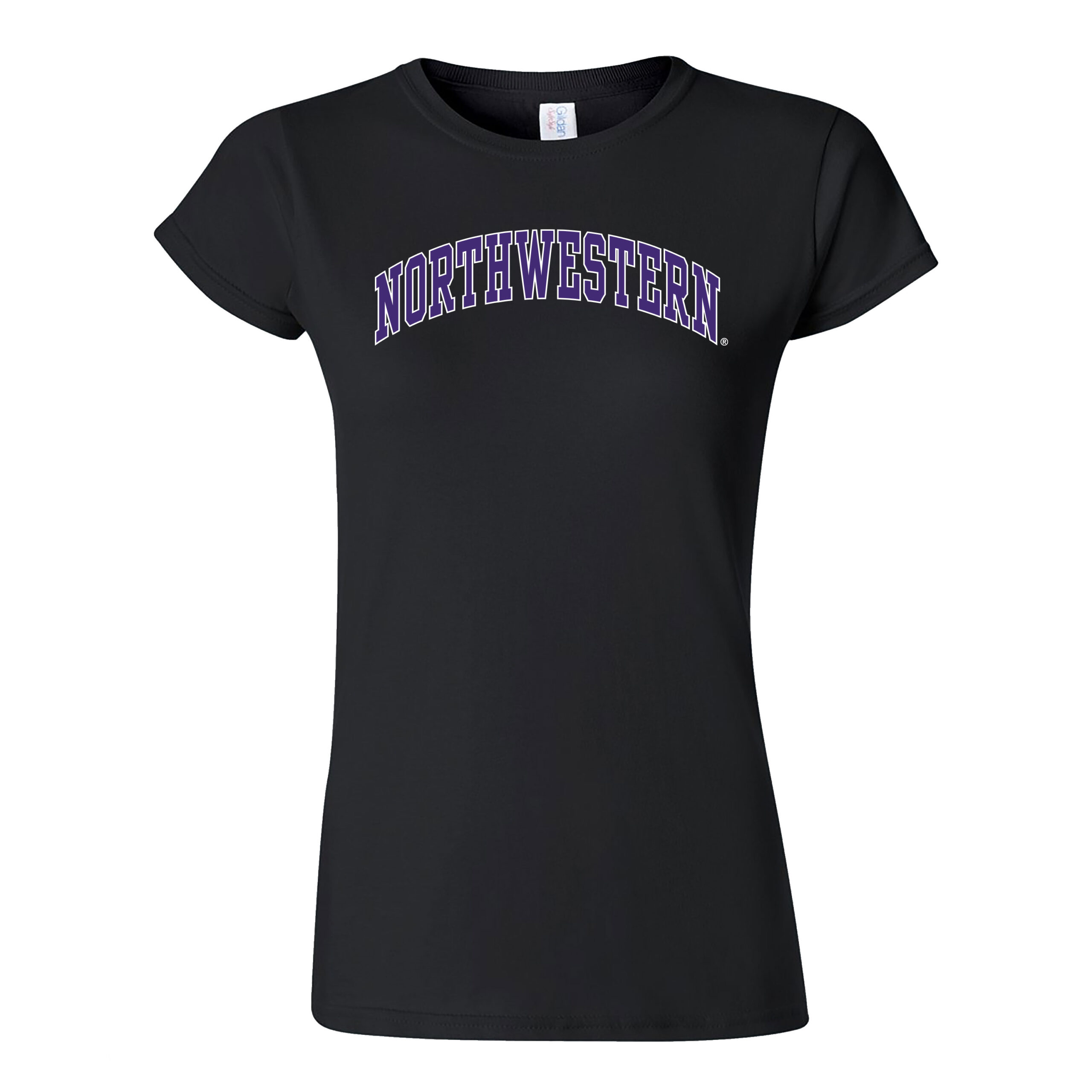 Northwestern University Wildcats Women’s MV Softstyle Black Tee Shirt with Two Color Northwestern Arch Design