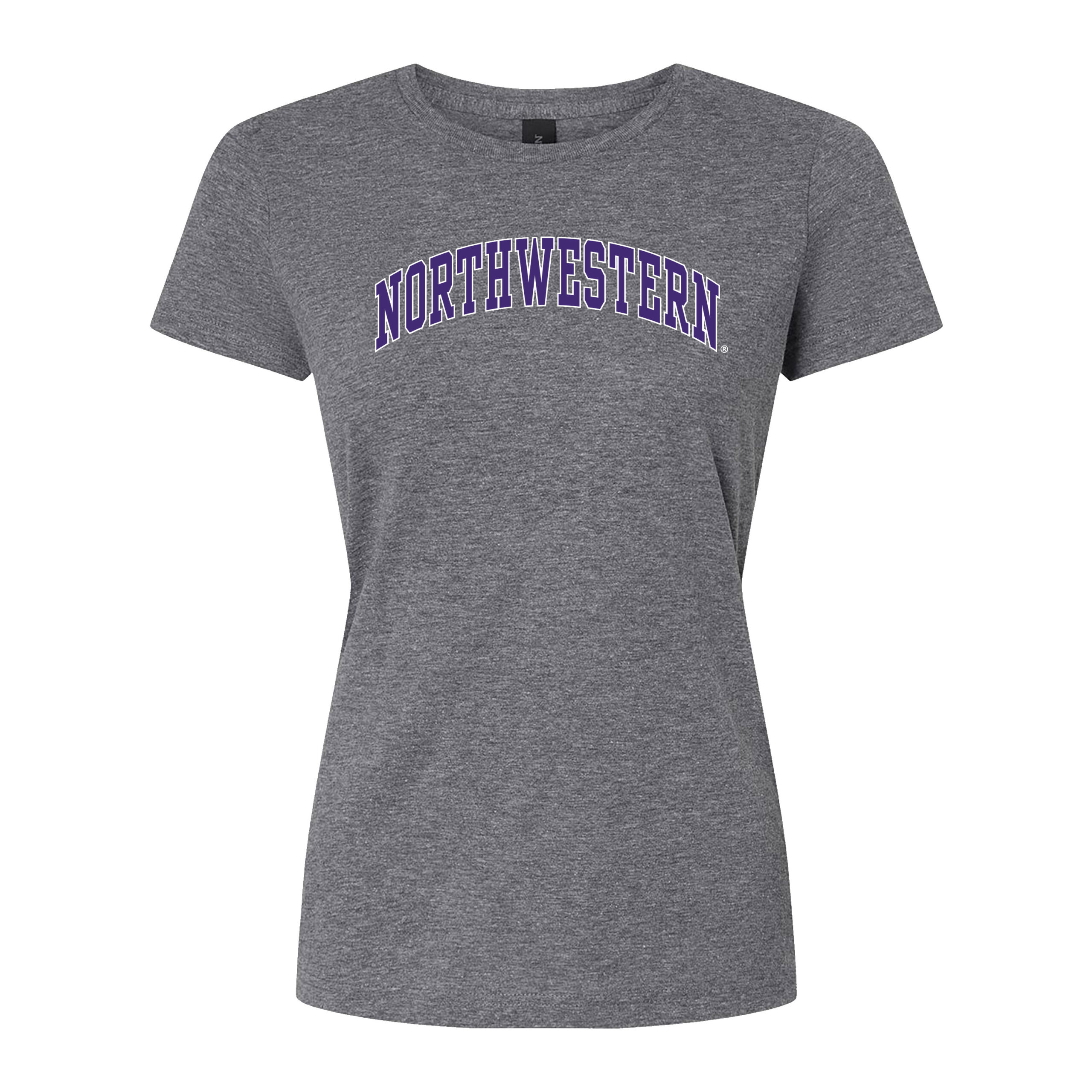 Northwestern University Wildcats Women’s MV Softstyle Graphite Heather Tee Shirt with Two Color Northwestern Arch Design