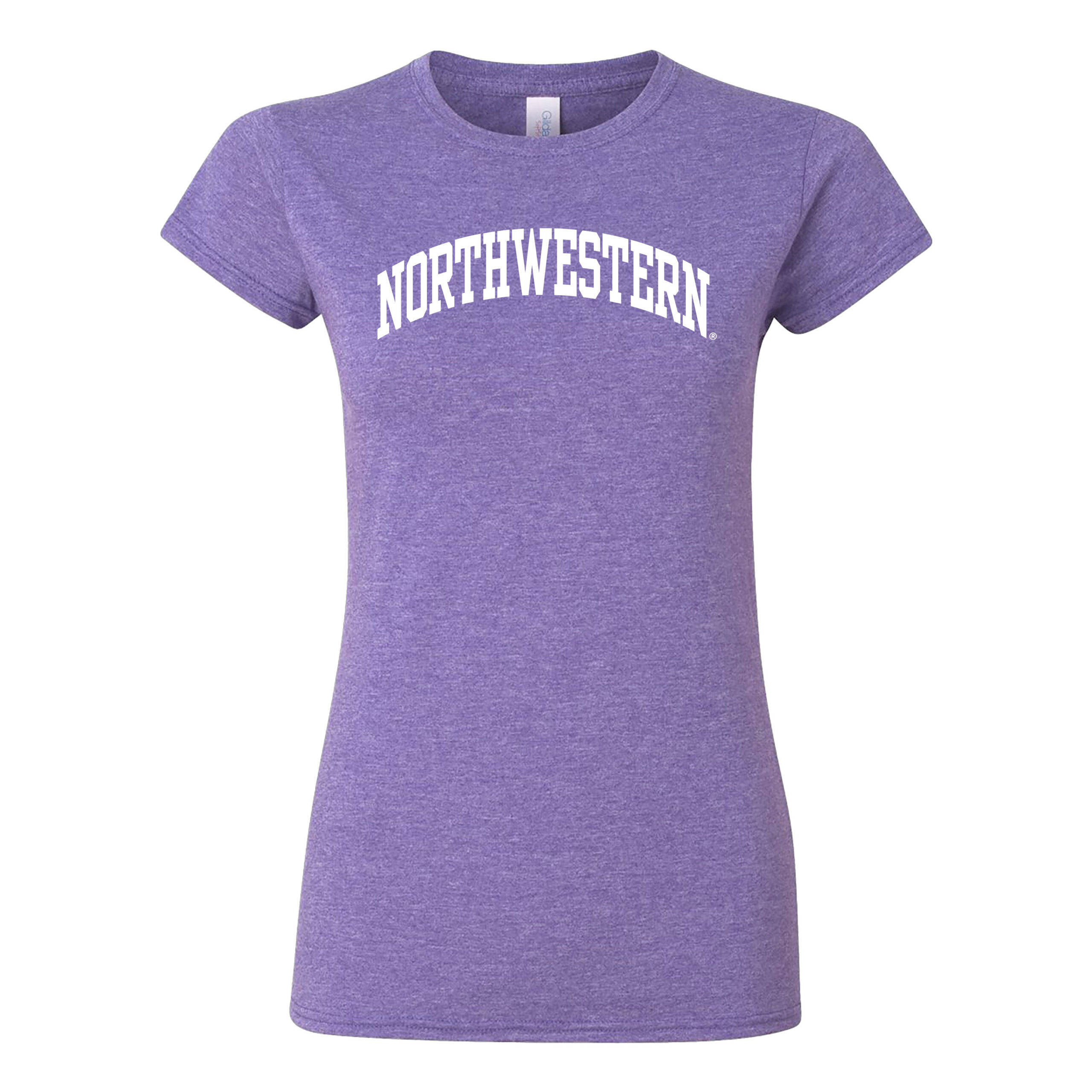Northwestern University Wildcats Women’s MV Softstyle Heather Purple Tee Shirt with One Color Northwestern Arch Design