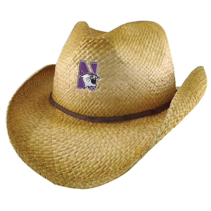 Northwestern University Wildcats Wrangler Distressed Raffia Cowboy Hat With Swede Leather Accent and Flex-fit Band