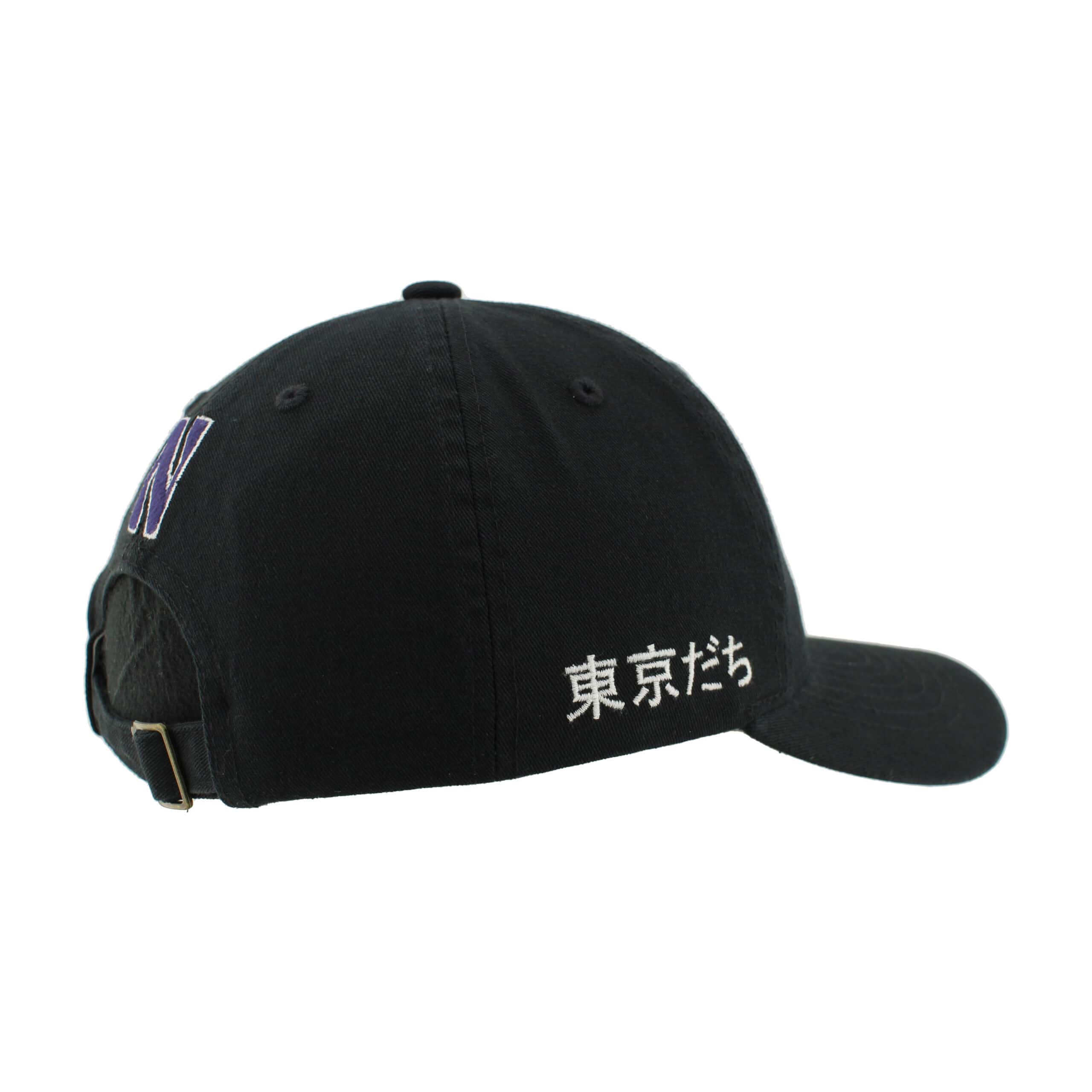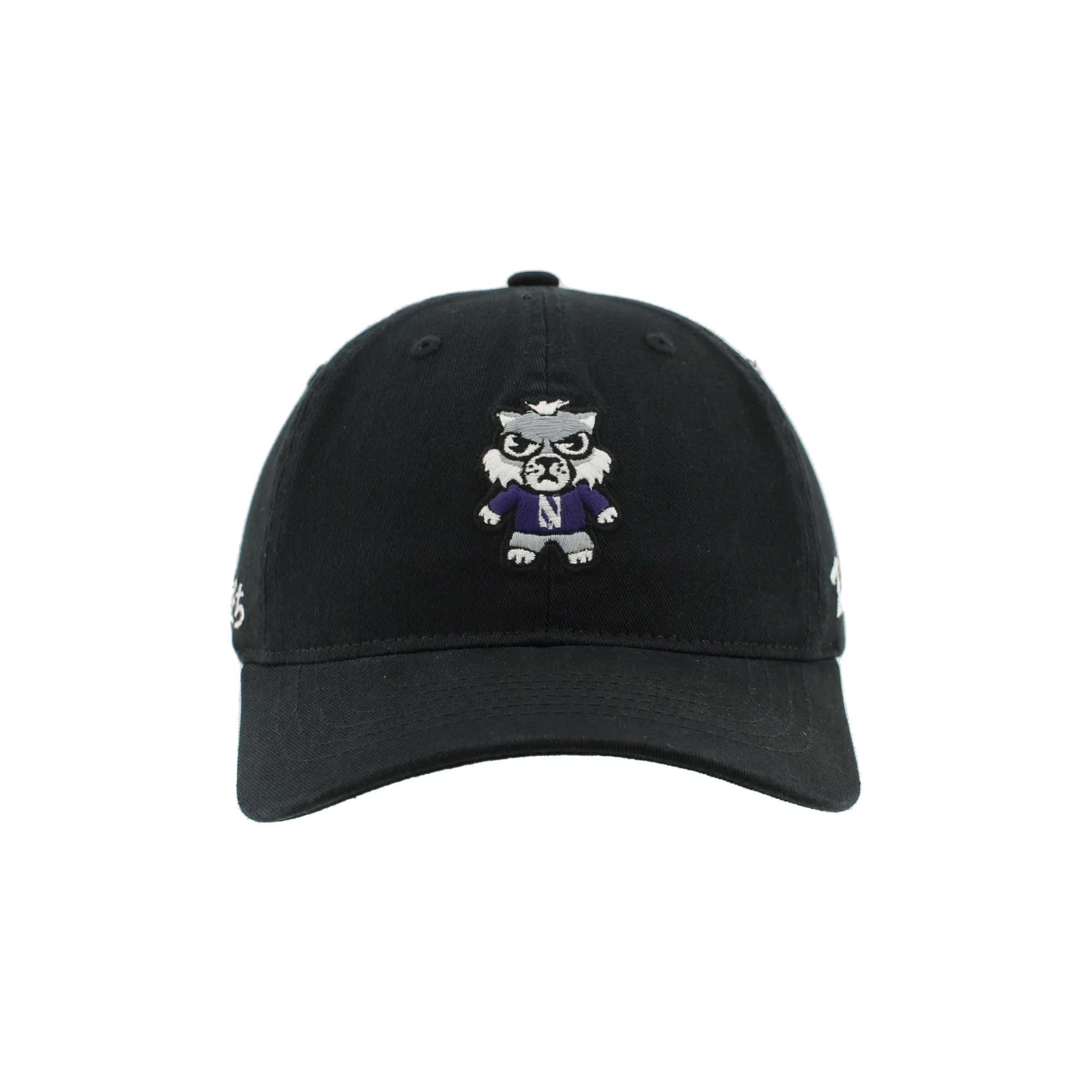 Northwestern University Wildcats Zephyr Unconstructed Adjustable Black Hat with Tokyodachi Willie the Wildcat Design quantity