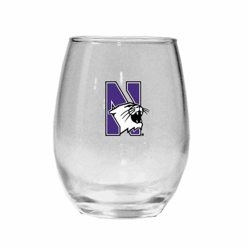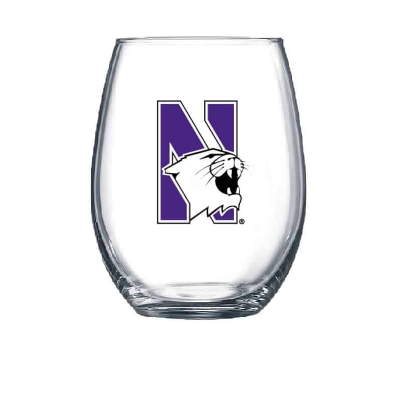 Northwestern University Wildcats 15 oz. Stemless Wine Glass with N-Cat Design
