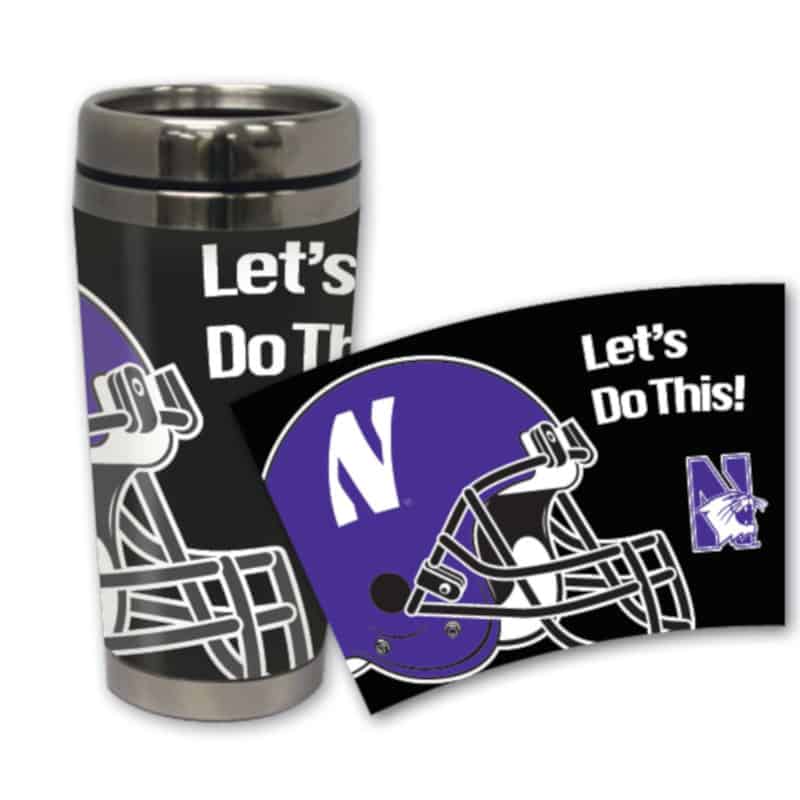 Northwestern University Wildcats 16 oz Stainless Steel Travel Mug with Football Design