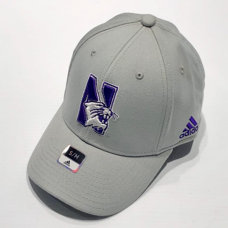 Northwestern University Wildcats Adidas Grey Constructed Flexfit Hat with N-Cat Design