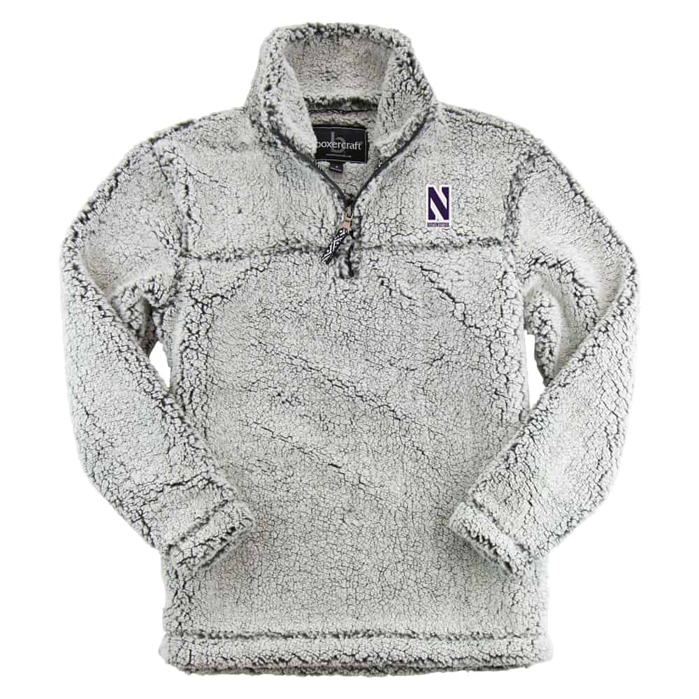 Northwestern University Wildcats Adult Frosty Grey Sherpa Quarter Zip Pullover Jacket by Boxercraft