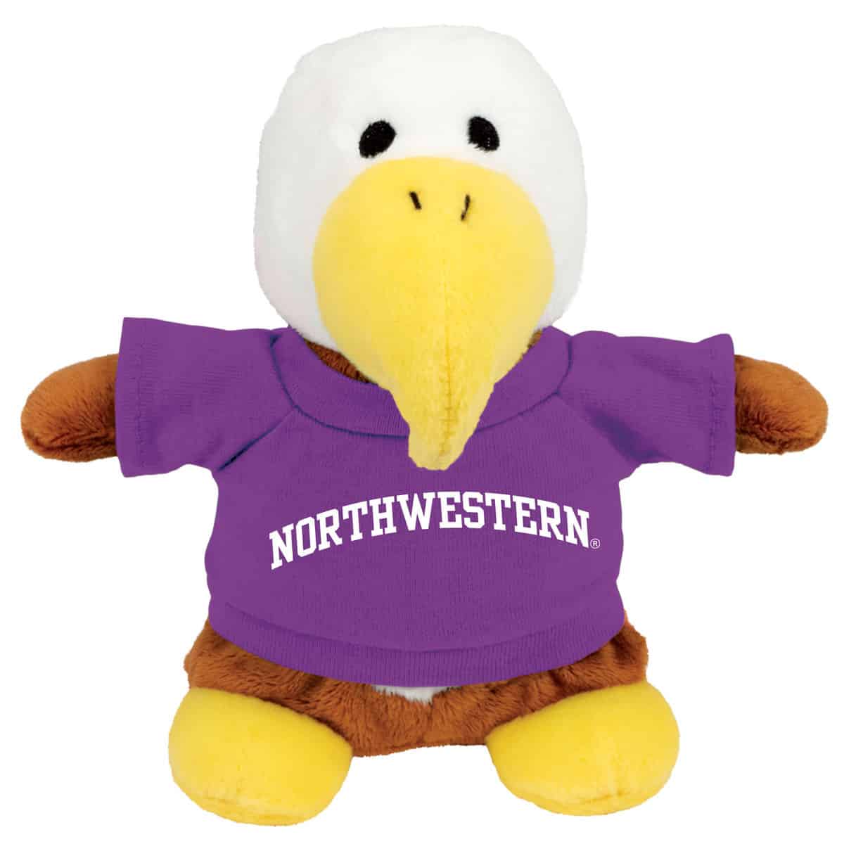Northwestern University Wildcats Bean Bag Buddy Eagle Wearing a Purple Northwestern Tee Shirt