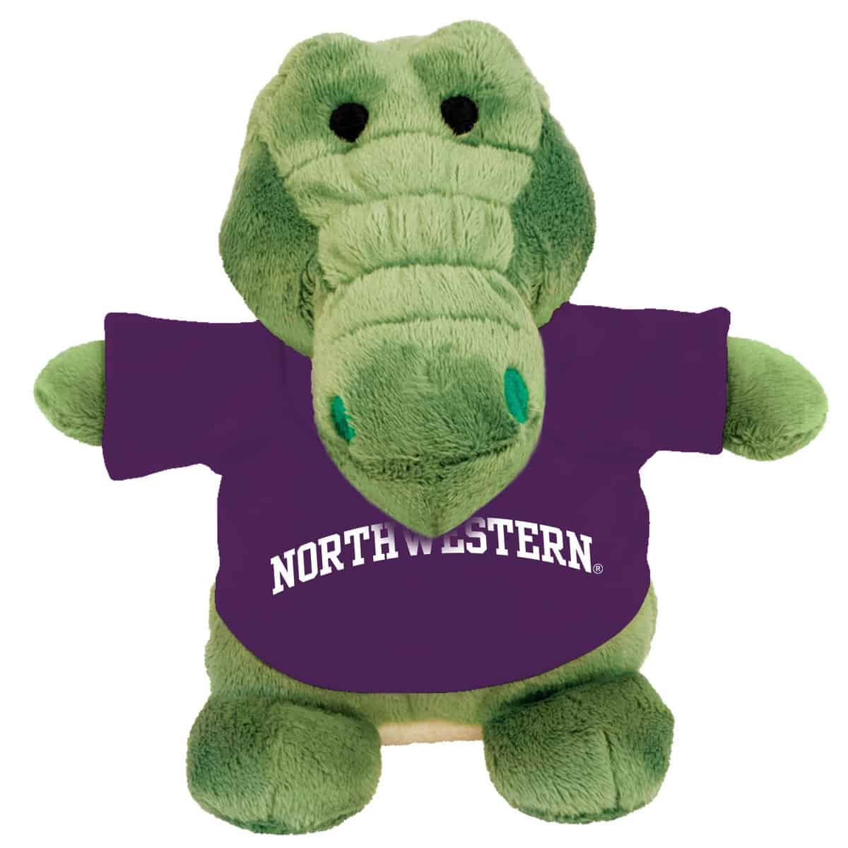 Northwestern University Wildcats Bean Bag Buddy Gator Wearing a Purple Northwestern Tee Shirt