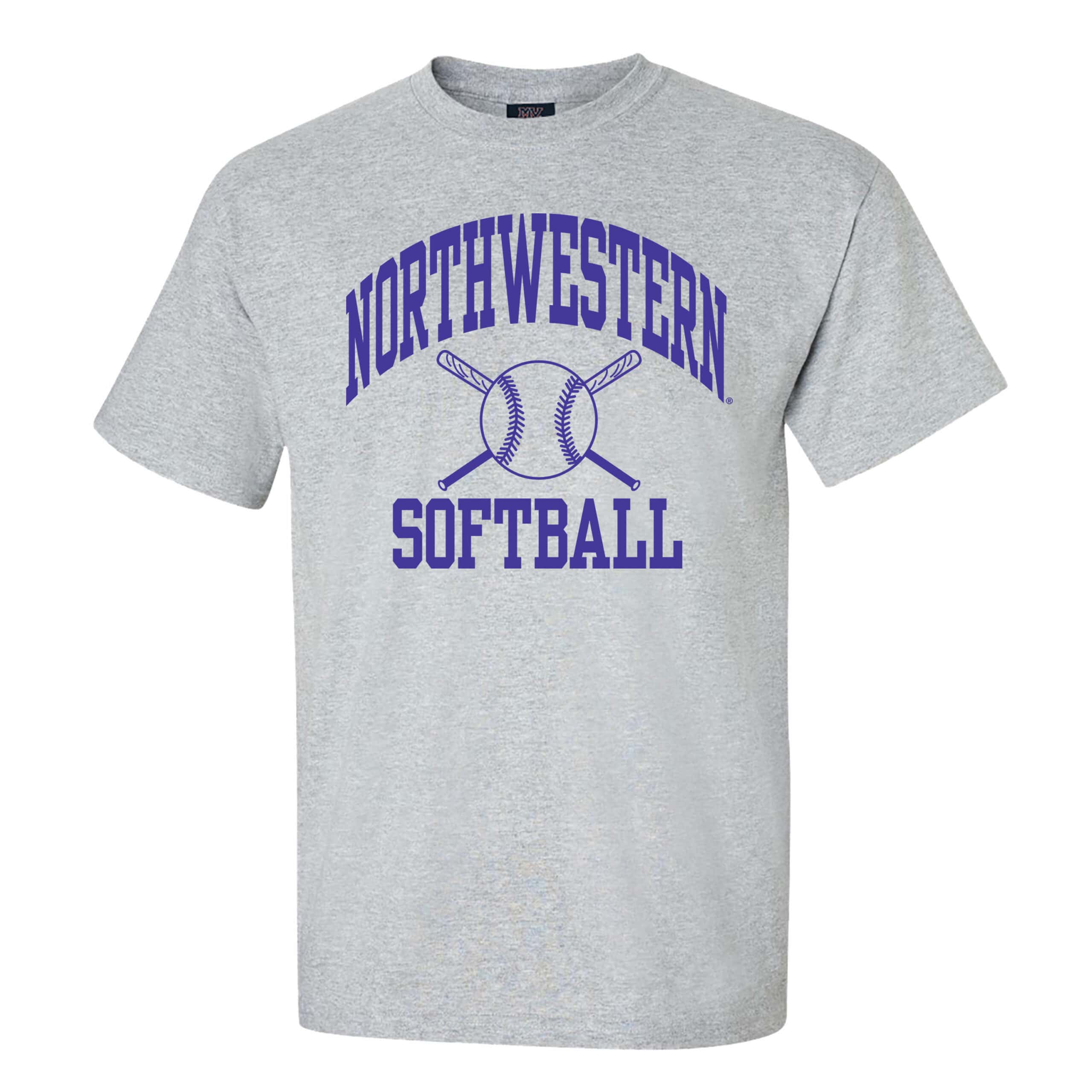Northwestern University Wildcats Grey Short Sleeve Tee Shirt with Softball Design