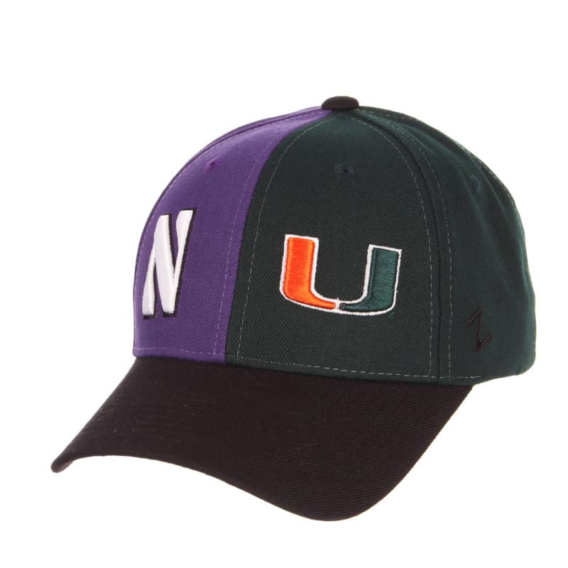 Northwestern University Wildcats House Divided Hat with Miami Hurricanes