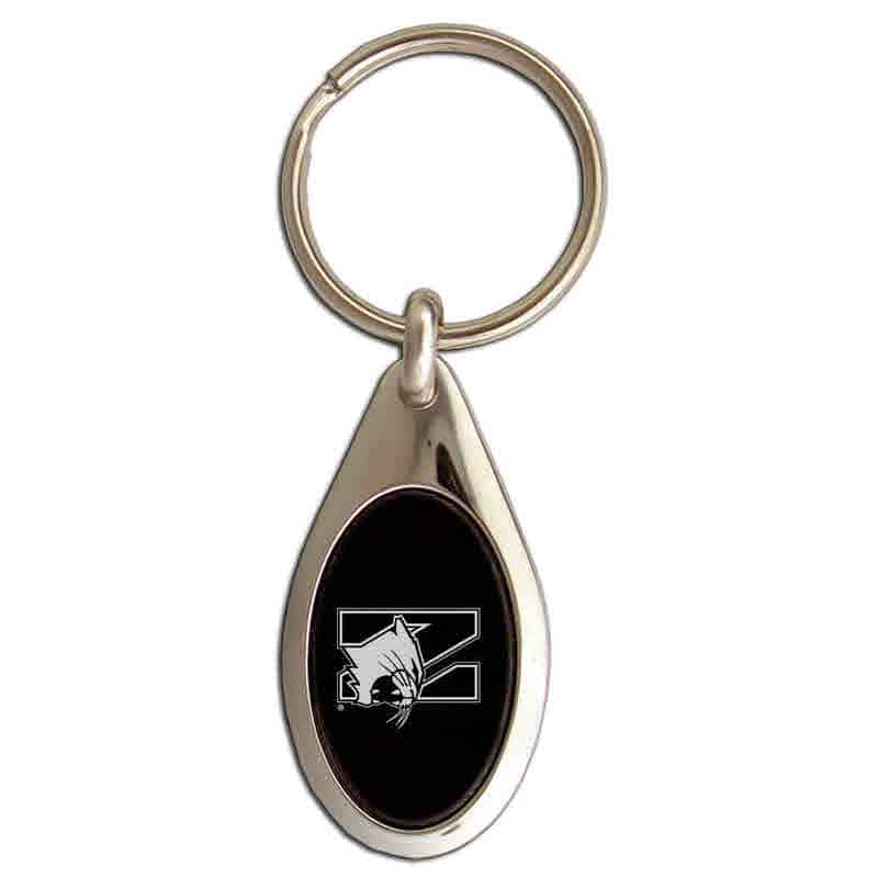 Northwestern University Wildcats Laser Engraved Oval Black/Silver Key Chain with Mascot Design