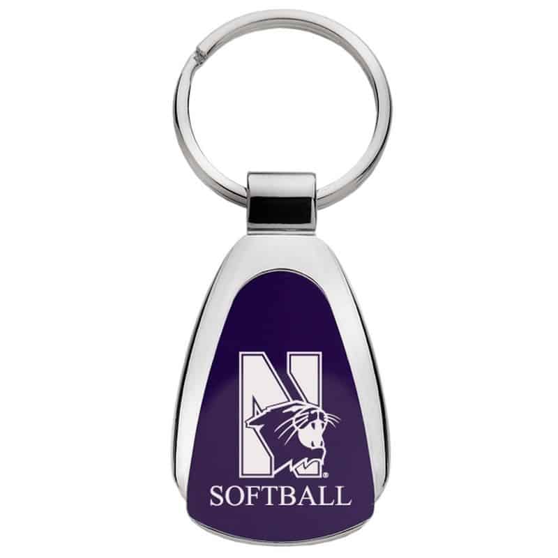 Northwestern University Wildcats Laser Engraved Purple Teardrop Key Chain with Mascot & Softball Design