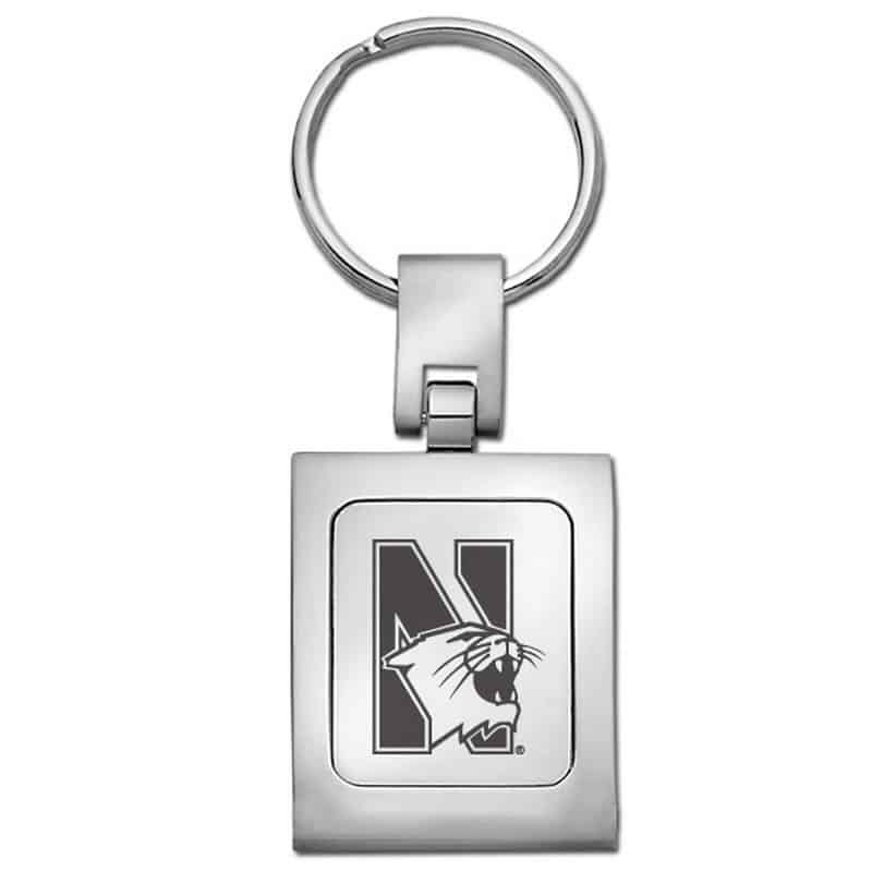 Northwestern University Wildcats Laser Engraved Square Trillium Key Chain with Mascot Design