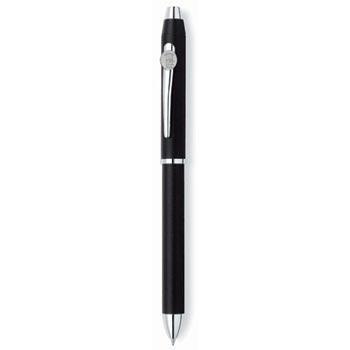 Northwestern University Wildcats Mascot Design Silver Medallion Cross "Tech 3" All in One Pen/Pencil Multi-Function Satin Black with Polished Chrome