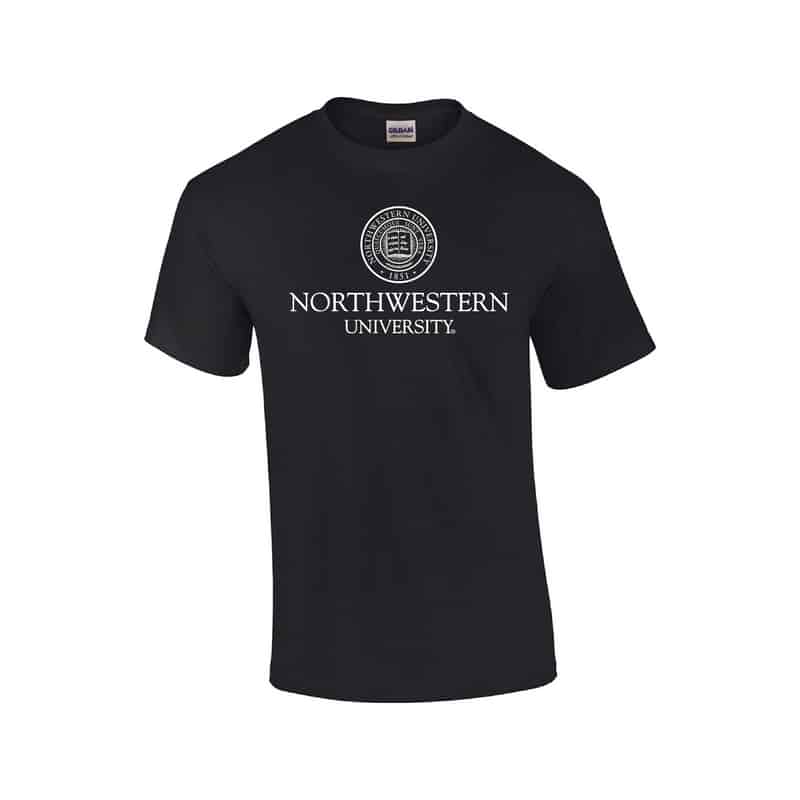 Northwestern University Wildcats Men’s Black Short Sleeve Tee Shirt with Northwestern University Seal Design