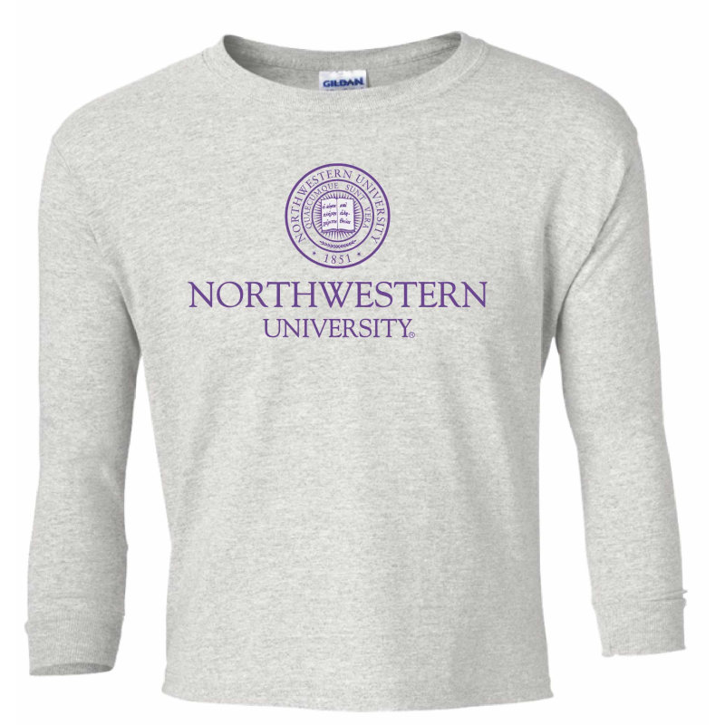 Northwestern University Wildcats Men’s Light Grey Long Sleeve Tee Shirt with Northwestern University Seal Design