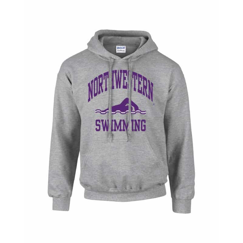 Northwestern Wildcats Men’s Grey Hooded Sweatshirt with Swimming Design