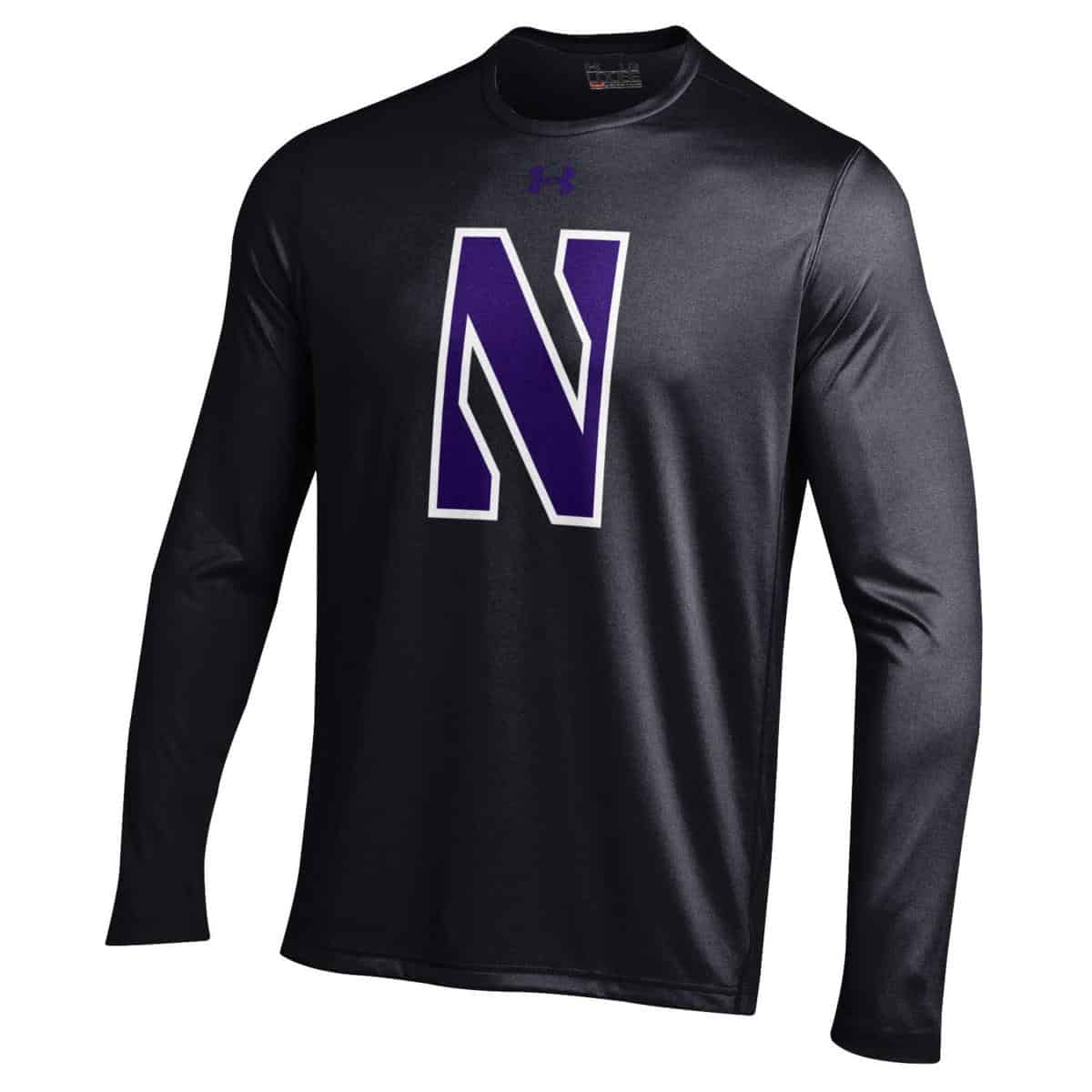 Northwestern University Wildcats Men’s Under Armour Tactical Tech™ Black Long Sleeve T-Shirt with Stylized Northwestern N Design