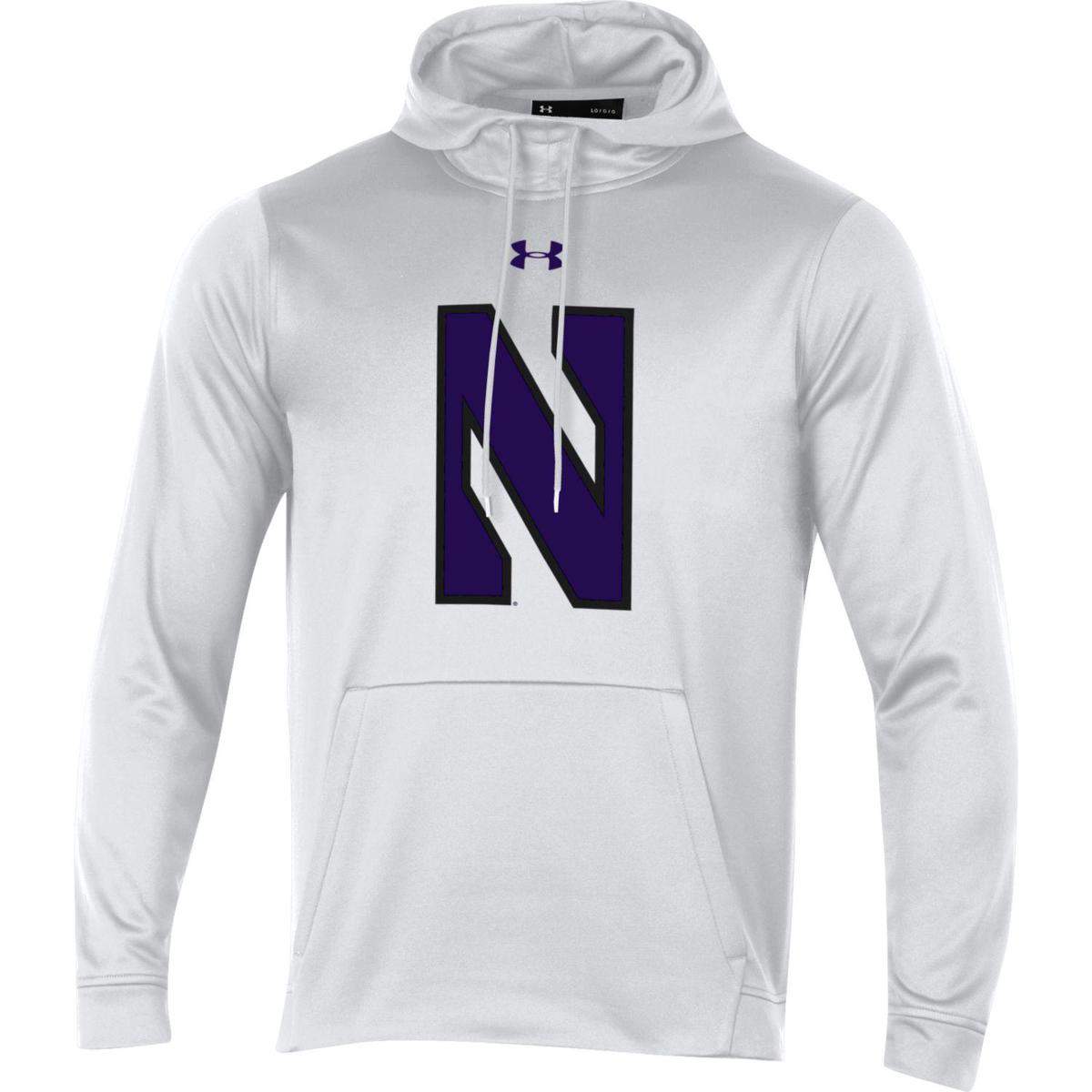 Northwestern University Wildcats Men’s Under Armour Tactical Tech™ White Hooded Sweatshirt with Stylized N Design