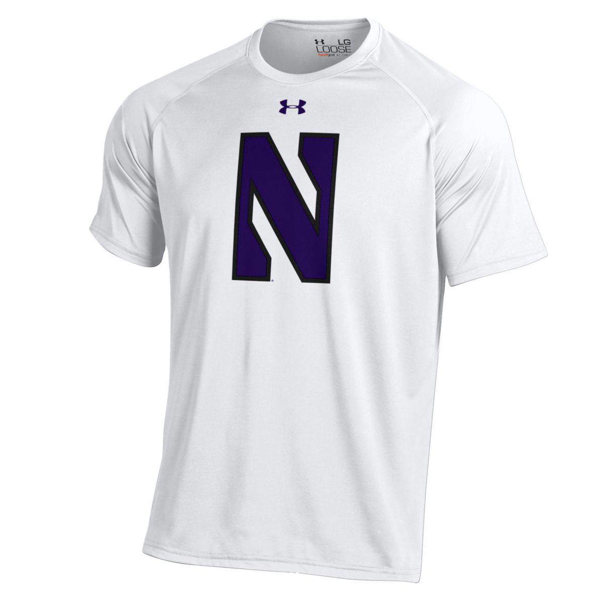 Northwestern University Wildcats Men’s Under Armour Tactical Tech™ White Short Sleeve T-Shirt with Stylized Northwestern N Design