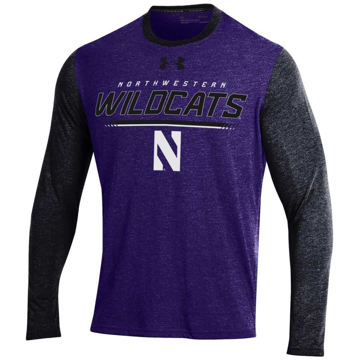 Northwestern University Wildcats Men’s Under Armour Threadborne Color blocked Purple & Black Long Sleeve Tee