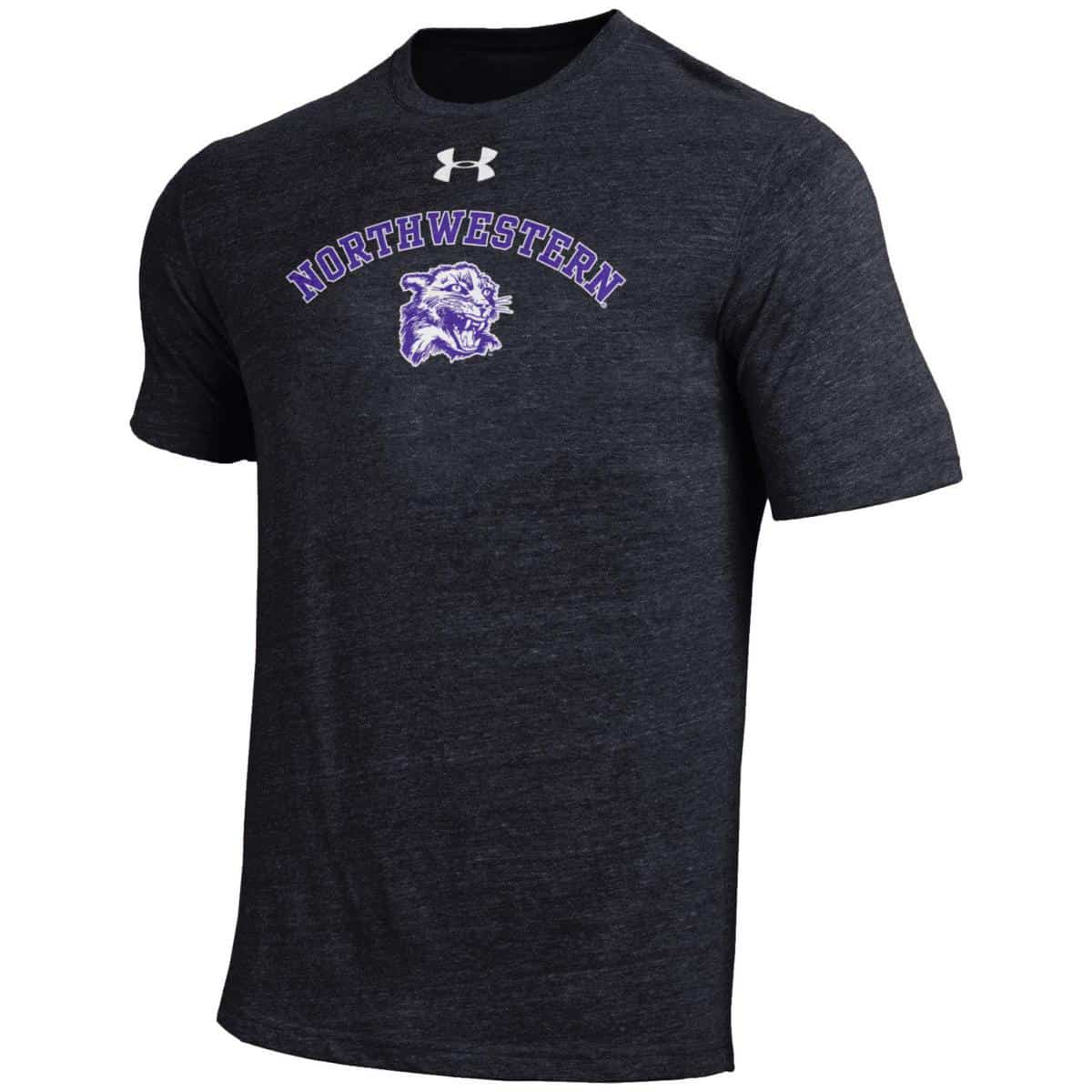 Northwestern University Wildcats Men’s Under Armour Triblend Black Heather Tee with Vintage Wildcat Design