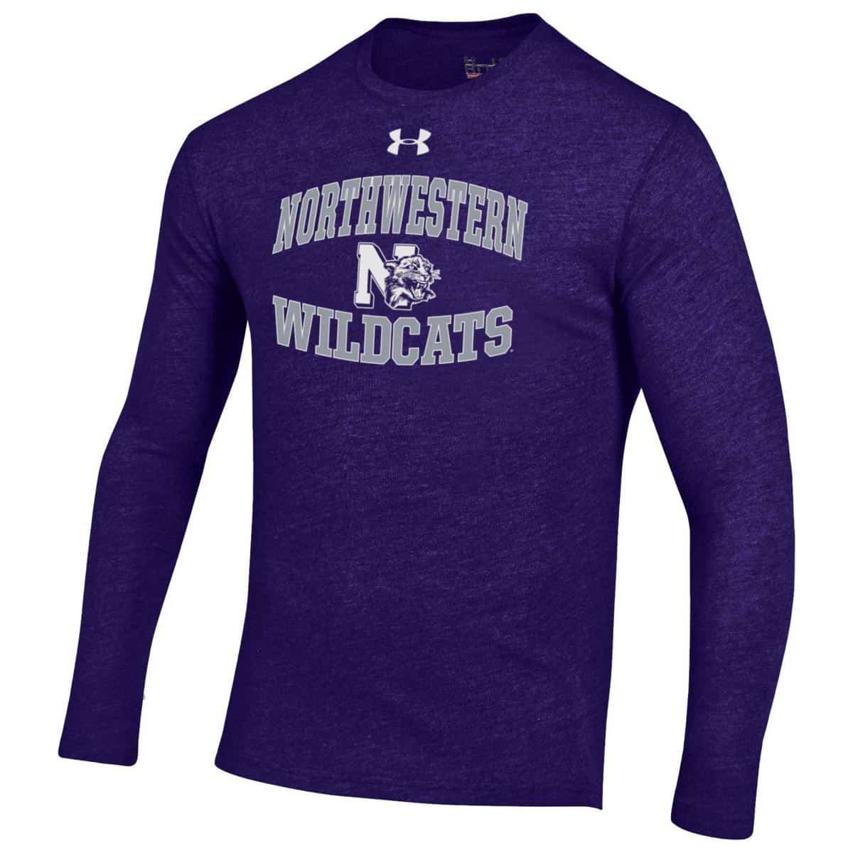 Northwestern University Wildcats Men’s Under Armour Triblend Purple Heather Long Sleeve Tee with Vintage N-Cat Design