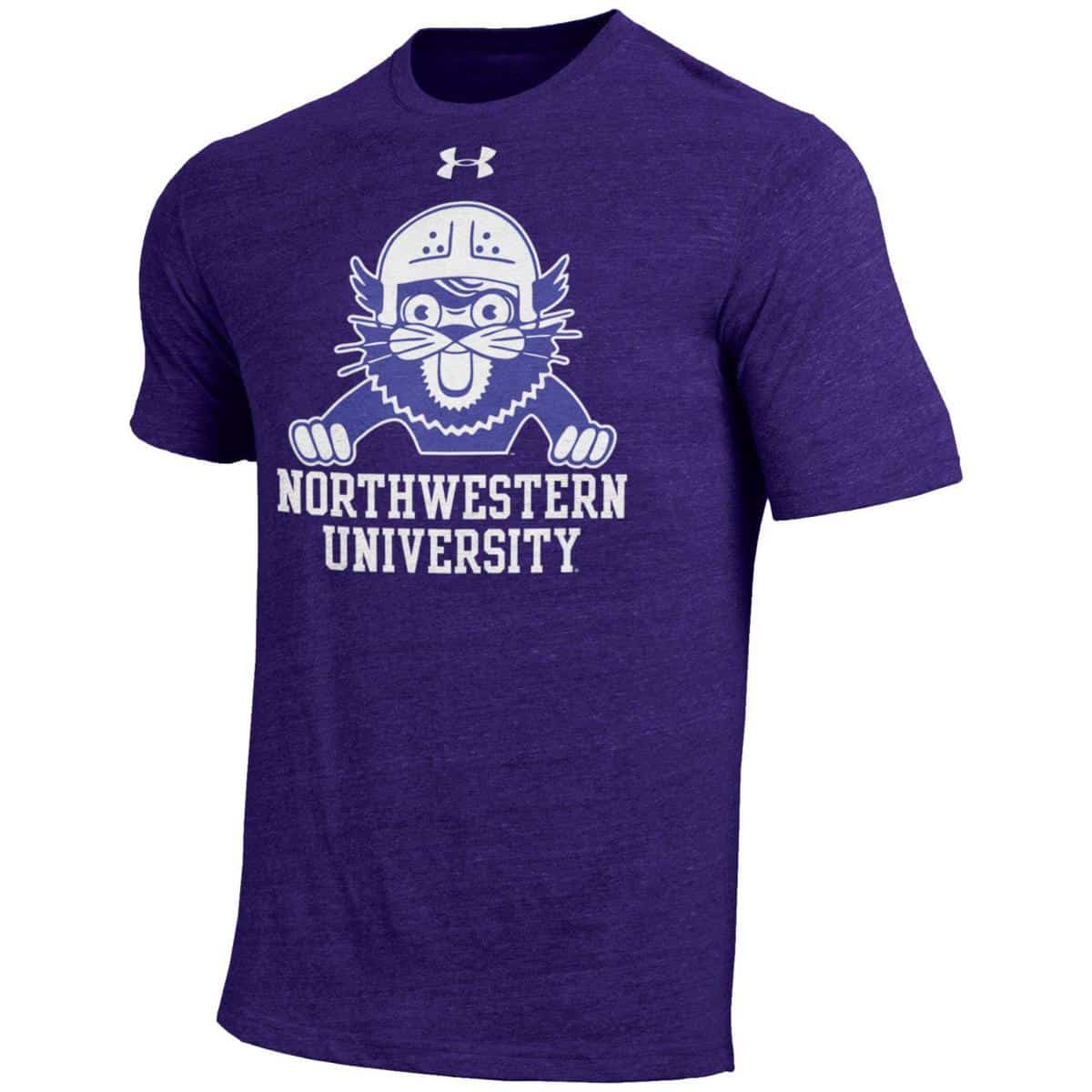 Northwestern University Wildcats Men’s Under Armour Triblend Purple Tee with Vintage Wildcat with the Helmet Design