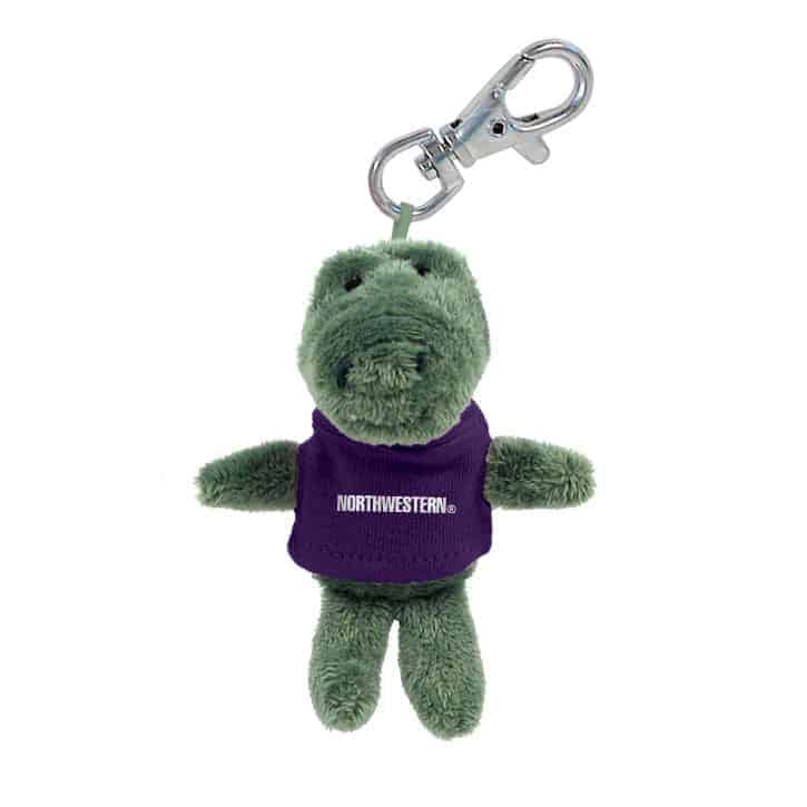 Northwestern University Wildcats Plush Keychain of a Gator Wearing a Purple Northwestern Tee Shirt