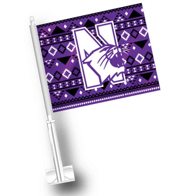 Northwestern University Wildcats Purple Car Flag with Aztec Print and N-Cat Logo