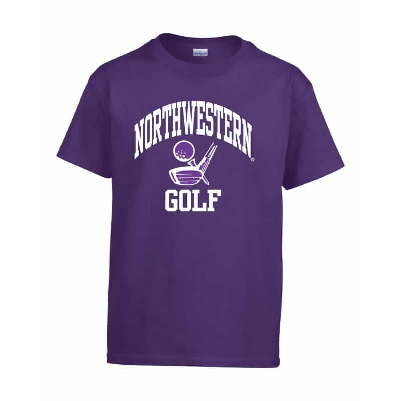 Northwestern University Wildcats Purple Short Sleeve Tee Shirt with Golf Design